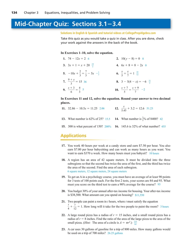 86 rows College Prep Algebra meets the needs of students by reinforcing algebra concepts to. Read more Read less. An answer key is provided so that you may check your answers.